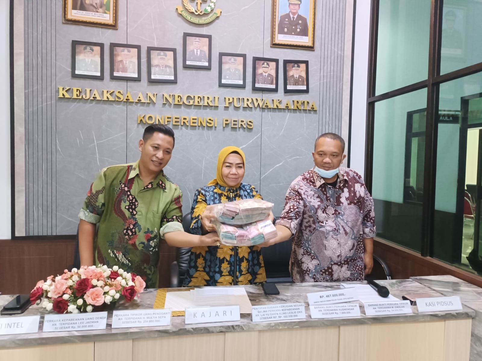 Kepala Kejaksaan (Kajari) Purwakarta, Rohayatie SH MH mengatakan, pada periode Januari sampai 9 Desember 2022 ini, Kejari Purwakarta melalu Bidang Tindak Pidana Khusus (Pidsus) berhasil melakukan menyelamatkan uang negara sebesar Rp467 juta.
