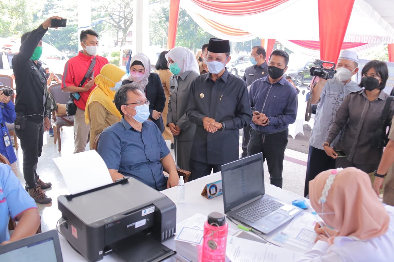 Dilokasi yang sama, nampak Wali kota Palembang H.Harnojoyo dan Sekretaris Daerah (Sekda) Palembang Ratu Dewa ikut langsung memantau berlangsungnya penyuntikan vaksin tersebut.