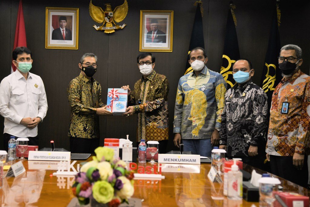 Laporan Hasil Pemeriksaan BPK dengan Opini WTP diserahkan langsung Pimpinan Pemeriksaan Keuangan Negara I BPK RI Bidang Polhukam, Hendra Susanto kepada Menteri Hukum dan Hak Asasi Manusia (Menkumham), Yasonna H. Laoly, Senin (28/06/2021) pukul 10.30 WIB bertempat di Ruang Rapat Menkumham.