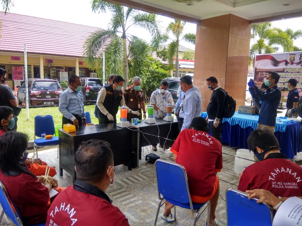 Hasil Ungkap Narkoba Polda Sumsel Selama Febuari Maret Dimusnahkan