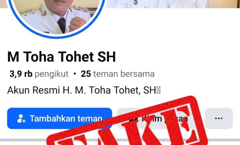MATTANEWS.CO, MUBA – Pemerintah Kabupaten Musi Banyuasin (Pemkab Muba) mengingatkan masyarakat bahwa terdapat akun Facebook yang mengatasnamakan Bupati Muba, H. M. Toha, yang ternyata adalah akun palsu.