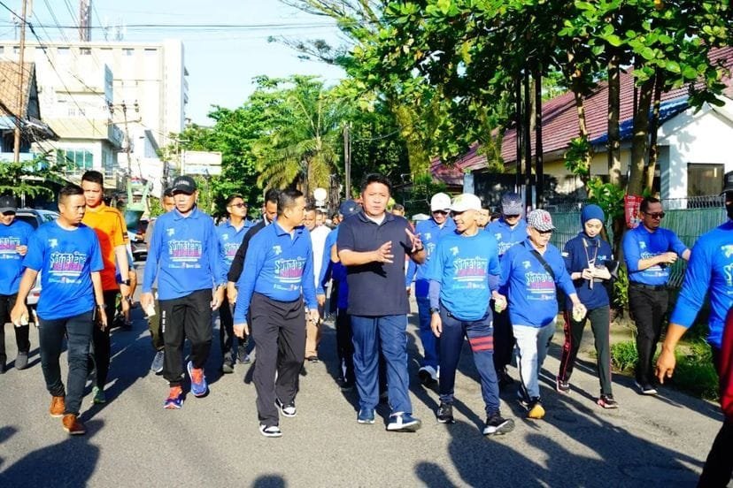MATTANEWS.CO, PALEMBANG– Gubernur Sumsel H. Herman Deru bersama Forkopimda Sumsel mengikuti Jalan santai dan senam bersama dalam rangka HUT Ke 77 Pemerintah Provinsi Sumatera Selatan di Kantor Gubernur Sumsel, Sabtu, (13/5/2023)