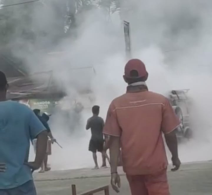 Asap tebal sempat terlihat membumbung dari kendaraan yang terbakar, sebelum akhirnya api berhasil dipadamkan.