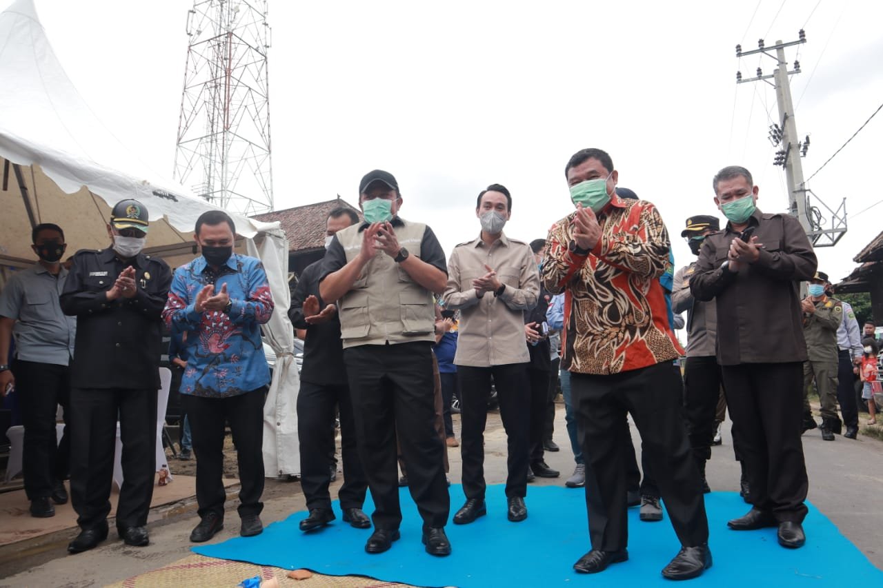 Peresmian infrastuktur di Kabupaten Ogan Ilir ditandai pemukulan tambur, pemecahan kendi dan peninjauan jalan oleh Gubernur Herman Deru, Bupati OI, ilyas Panji Alam dan unsur Forkopimda setempat.
