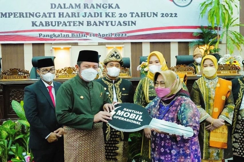 Diketahui, pada momen HUT ke 20 Kabupaten Banyuasin tersebut Gubernur Herman Deru memmberikan sejumlah bantuan, salah satunya satu unit mobil ambulan untuk melengkapi fasilitas kesehatan di Kabupaten Banyuasin.