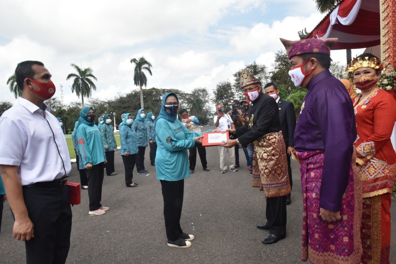 PALEMBANG, Mattanews.co – Masih dalam rangkaian peringatan HUT RI ke-75, setelah mengikuti upacara peringatan detik-detik proklamasi secara virtual, Gubernur Sumsel Herman Deru (HD) didampingi Ketua TP PKK Sumsel Feby Deru melepas tim Gerakan Bersama Pakai Masker (Gebrak Masker) TP PKK Sumsel dan Dewan Pengurus Daerah Ikatan Keluarga Alumni Pendidikan Tinggi Kepamongprajaan (DPD IKAPTK) Sumsel.