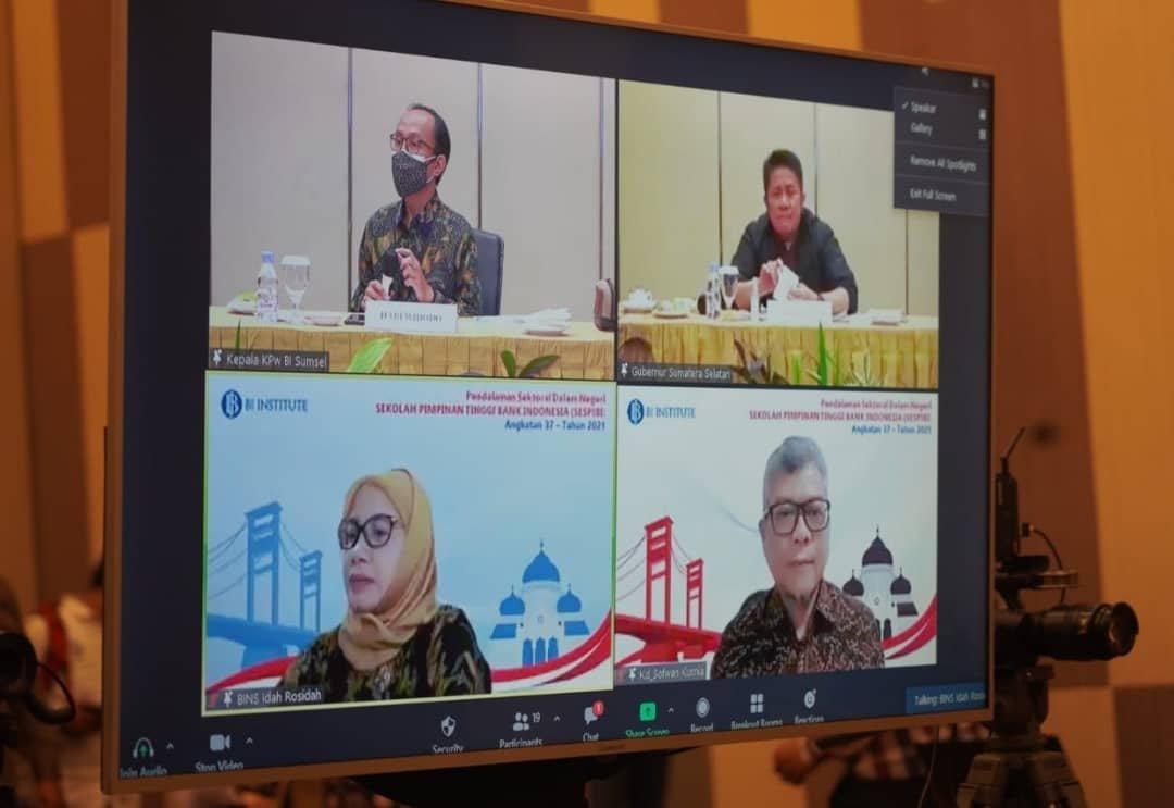 MATTANEWS.CO, PALEMBANG – Gubernur Sumatera Selatan (Sumsel) H. Herman Deru diadulat menjadi keynote speaker atau narasumber pada Focus Group Discussion (FGD) yang digelar secara virtual dalam rangka Pendalaman Sektoral Dalam Negeri (PSDN) Sekolah Pimpinan Tinggi Bank Indonesia (SESPIBI) yang dilaksanakan di hotel Novotel Palembang, Selasa (19/10/2021)