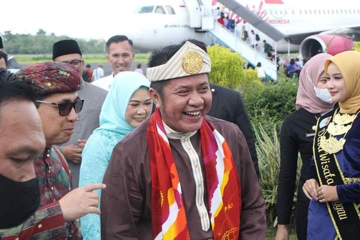 MATTANEWS.CO, LUBUKLINGGAU – Gubernur Sumatera Selatan (Sumsel), H Herman Deru bersama istri, Hj Febrita Lustia tiba di Bandara Silampari Kota Lubuklinggau dalam rangka menghadiri Hari Ulang Tahun ke-21 Kota Lubuklinggau, Senin (17/10/2022).