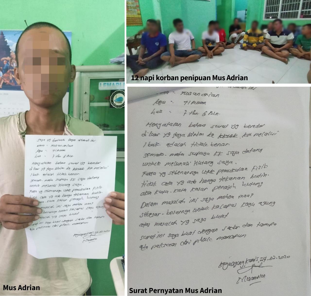 Disambungnya, korban bersama 11 orang napi lainnya merupakan korban sebenarnya. Dirinya sendiri mengaku terperdaya mulut manis pelaku hingga merelakan tabungannya Rp16 juta digasak Mus.