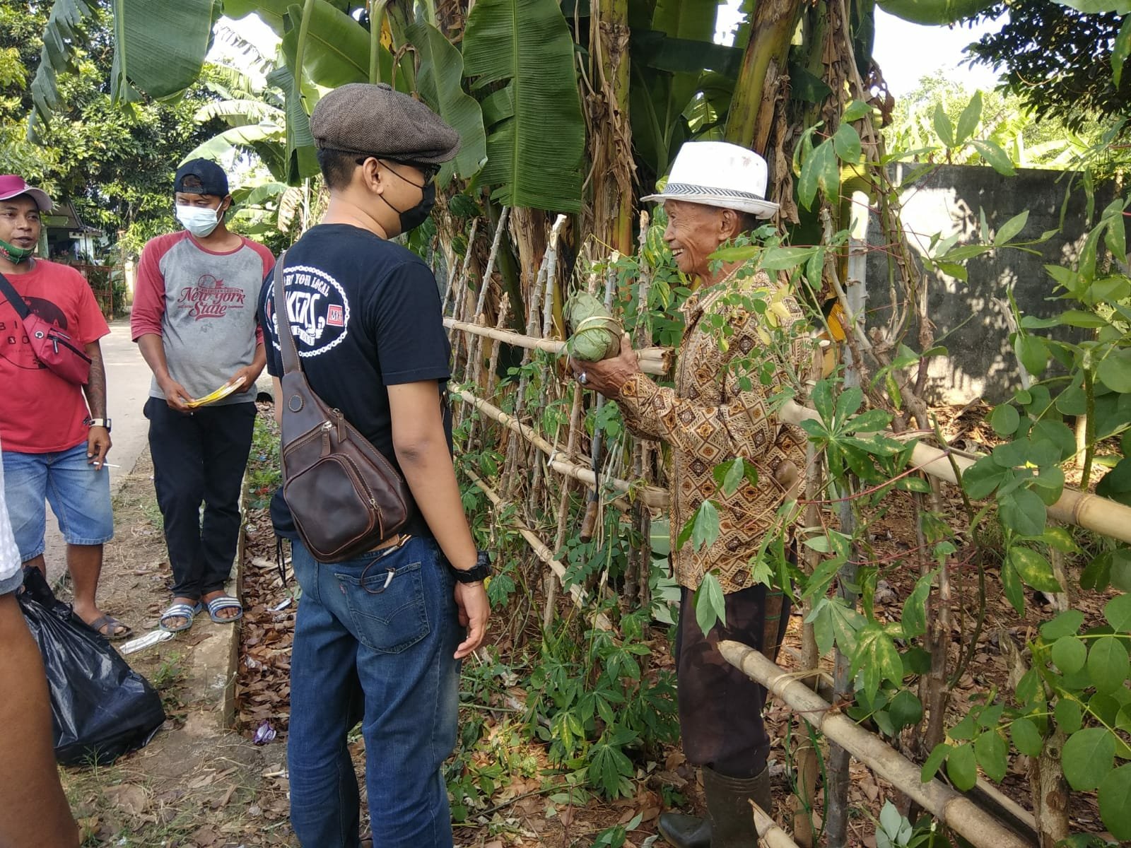 Selain membungkus daging dengan daun jati, AHV Maula Akbar Ketua DPD Partai Golkar berkeliling kampung kampung untuk menyerahkan daging kurban secara acak, Rabu(21/07/2021).