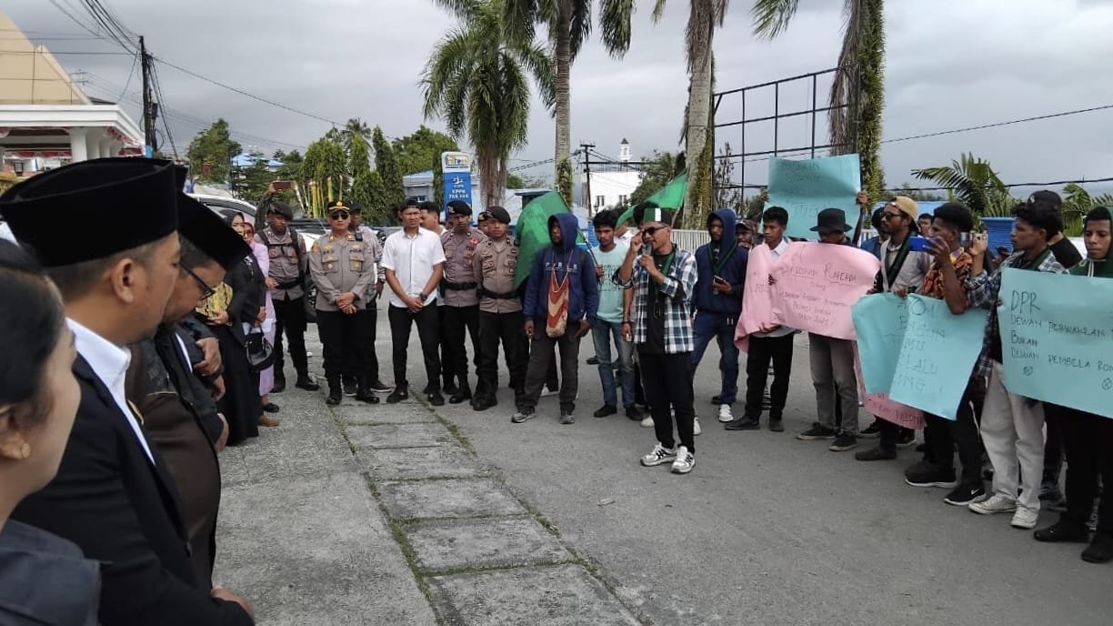 Dalam unras tersebut, nampak mereka membawa poster yang bertuliskan aspirasi-aspirasi, yang menjadi pokok tuntutan dalam aksi tersebut, seperti Sukseskan Reperda tentang Anggaran Pendapatan Belanja Daerah Tahun 2024, Stop bersuara atas nama rakyat, Buka Suaramu Ditunggangi Kepentingan Kelompok, DPR Dewan Perwakilan Rakyat, Bukan Dewan Pembela Rombongan.