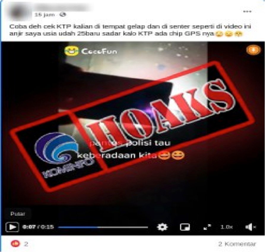 Faktanya, dalam penelusuran Mattanews.co, Minggu (14/2/2021) dikutip dari laman resmi pemerintah diwakili oleh Kementerian Komunikasi dan Informatika (kominfo.go.id), klaim adanya chip GPS di KTP elektronik untuk melacak keberadaan seseorang adalah tidak benar atau hoax.