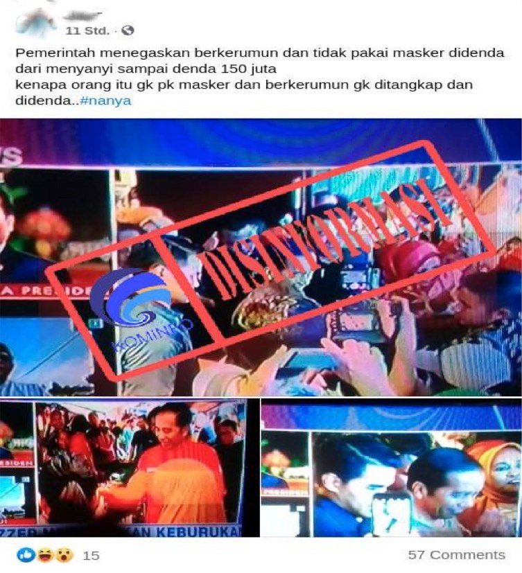 MATTANEWS.CO, JAKARTA– Beredar sebuah unggahan foto disertai narasi pada sosial media Facebook yang memperlihatkan Presiden Joko Widodo yang sedang berkerumun dan tidak menggunakan masker.