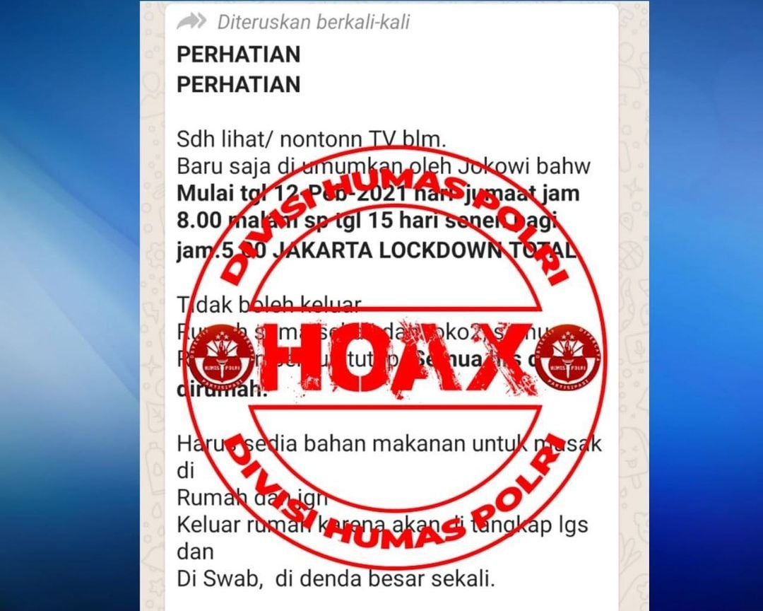 MATTANEWS.CO, JAKARTA– Beredar sebuah pesan berantai di Whatsapp Messenger yang berisi informasi bahwa Presiden Jokowi telah mengumumkan akan diadakannya lockdown di DKI Jakarta yang dimulai pada tanggal 12 sampai 15 Februari 2021.