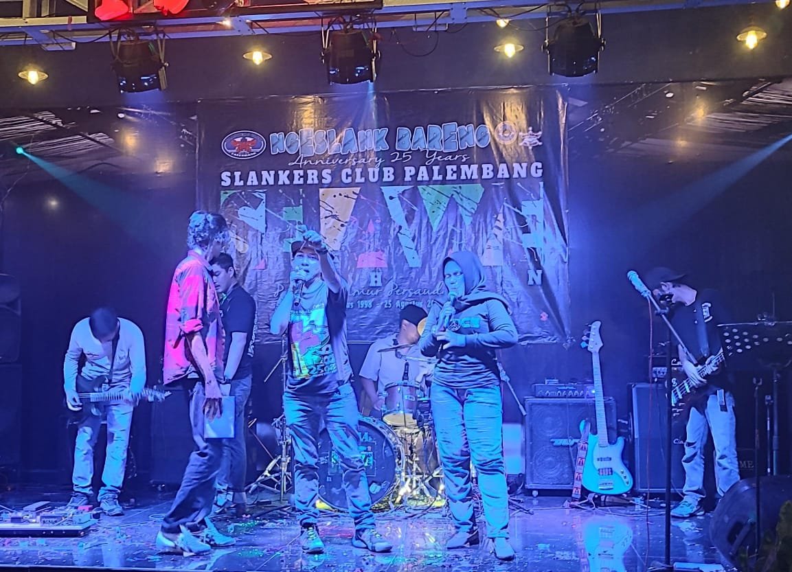 MATTANEWS.CO, PALEMBANG – Komunitas Slankers Club Palembang (SCP) memperingati hari jadi yang ke 25 Tahun, dalam acara yang bertajuk NGESLANG BARENG Anniversary ke 25 SLAWE year 1998-2023 yang dilaksanakan di Cafe Studio 12, acara tersebut menampilkan group band lokal yang sudah cukup familiar bagi warga kota Palembang dan anggota komunitas Slankers diantaranya The Kidrool, The Moksa dan masih banyak lagi artis pendukung yang turut hadir memeriahkan acara tersebut, Sabtu (26/8/2023).