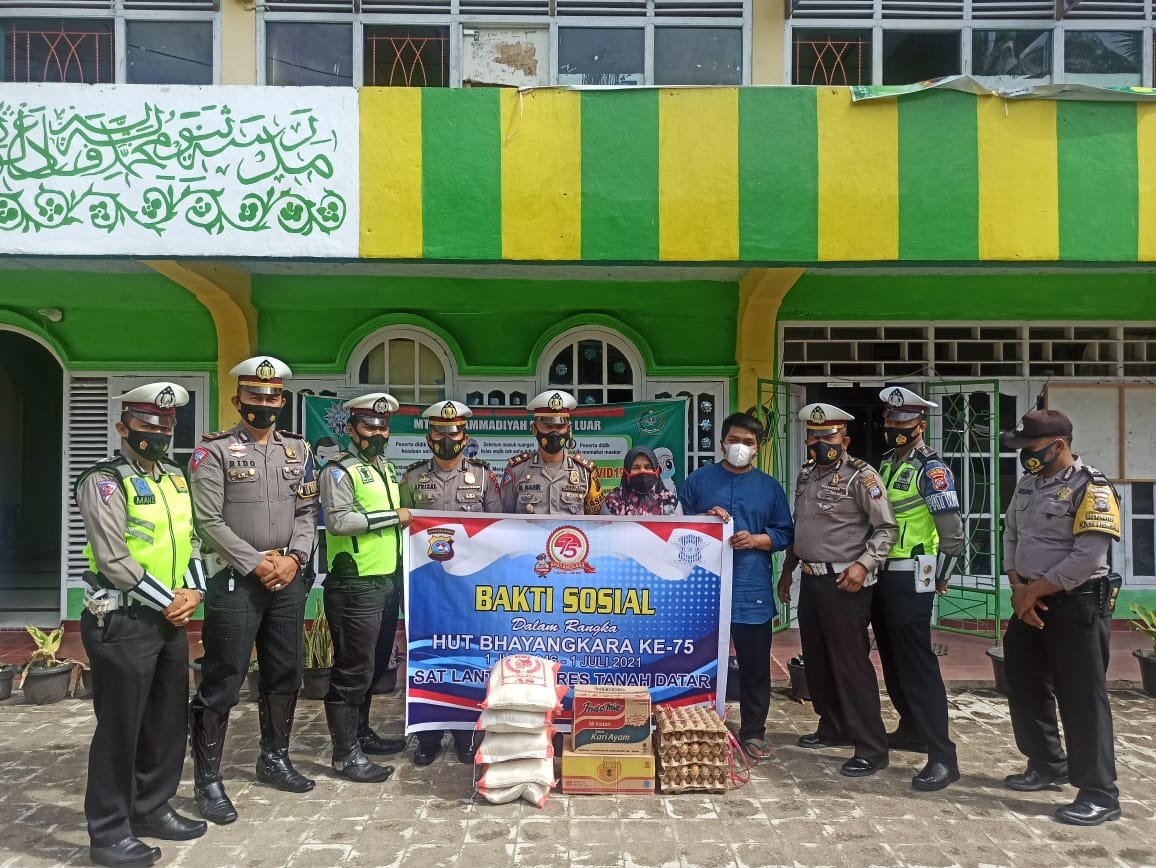 MATTANEWS.CO, TANAH DATAR – Aparat kepolisian Sat Lantas Polres Tanah Datar dalam agenda HUT Bhayangkara menggelar bakti sosial mengunjungi panti asuhan Rabu,(23/6/2021).