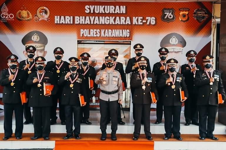 Kenaikan pangkat diberikan kepada 54 personil berpangkat IPDA, IPTU, AIPDA, BRIPKA, BRIGPOL dan BRIPTU sekaligus wisuda purnabhakti 19 personil Polres Karawang.