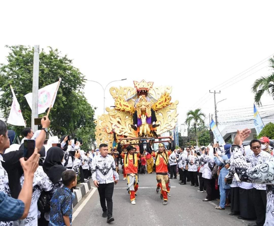 “Tiga tahun yang lalu, semua pihak melepas jangkar dan membentangkan layar kapal besar bernama Merdeka Belajar. Ribuan pulau dari Sabang hingga Merauke sudah kita lewati, laut dengan ombak tinggi dan angin kencang sudah kita hadapi,” jelas Bupati membacakan amanat Menteri Pendidikan, Kebudayaan, Riset, dan Teknologi Republik Indonesia (Mendikbud ristek), Nadiem Anwar Makarim.