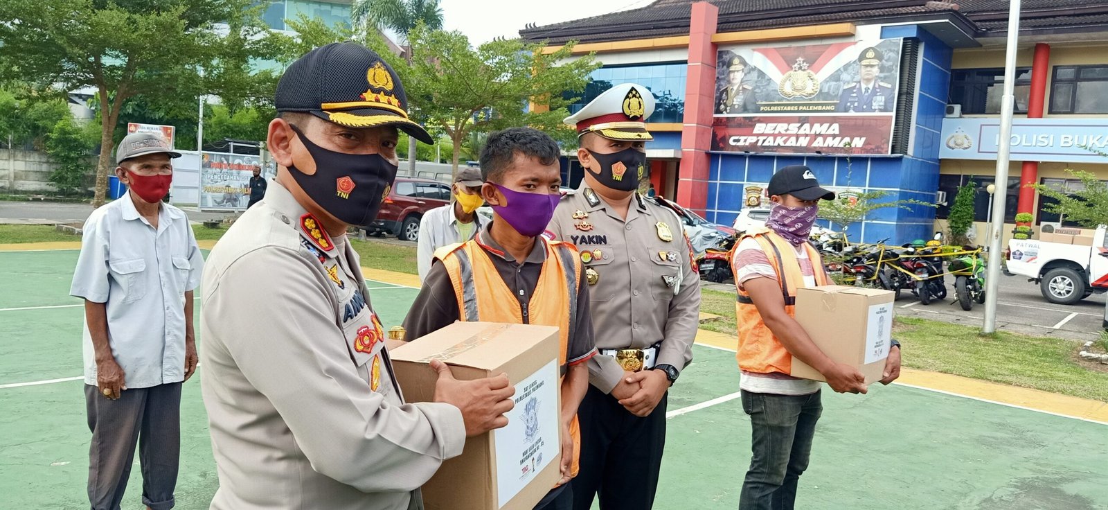 PALEMBANG, Mattanews.co – Dihari bersejarah HUT Polisi Lalulintas Bhayangkara ke-65 Tahun 2020, Jajaran Kepolisian, khususnya Polrestabes Palembang ikut peduli kasih dan menggelar bhakti sosial dengan membagikan 250 paket sembako kepada masyarakat kota Palembang, Kamis (17/9/2020).