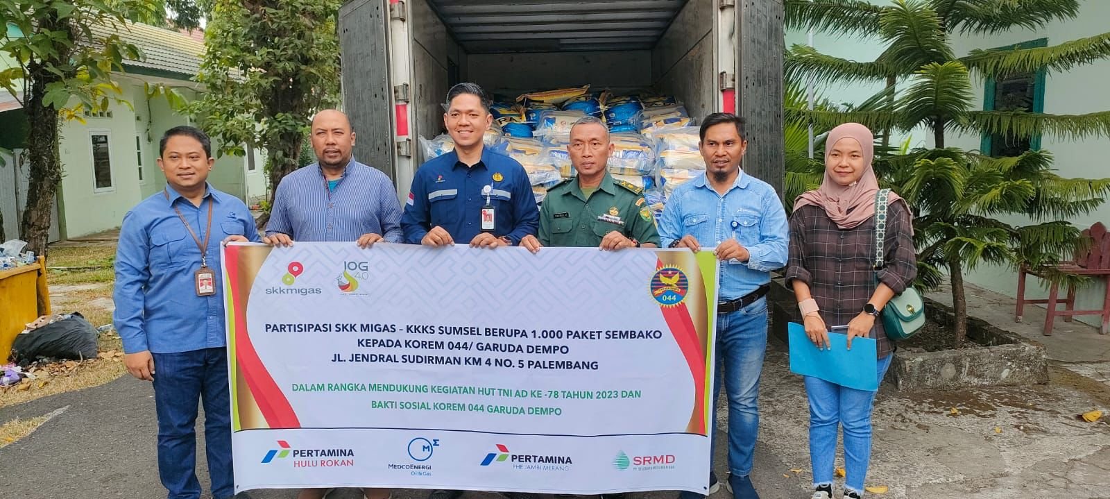 Kasrem 044/Gapo Kolonel Inf Thohir mengucapkan terimakasih kepada SKK Migas-KKKS Sumsel yang telah memberikan bantuan berupa 1.000 paket sembako dalam rangka memperingati HUT TNI Ke-78 Tahun 2023. “Kami ucapkan terima kasih yang sebesar-besarnya kepada SKK Migas, KKKS Medco E&P Indonesia, PHR Regional 1 Zona 4, PHE Jambi Merang dan Seleraya Merangin Dua telah mendukung program bakti sosial Korem 044/Gapo dan nantinya paket sembako ini akan secepatnya kami salurkan kepada masyarakat yang membutuhkan yang ada di Kabupaten Muara Enim yang merupakan salah satu daerah penghasil migas di Sumsel,” ujar Thohir.