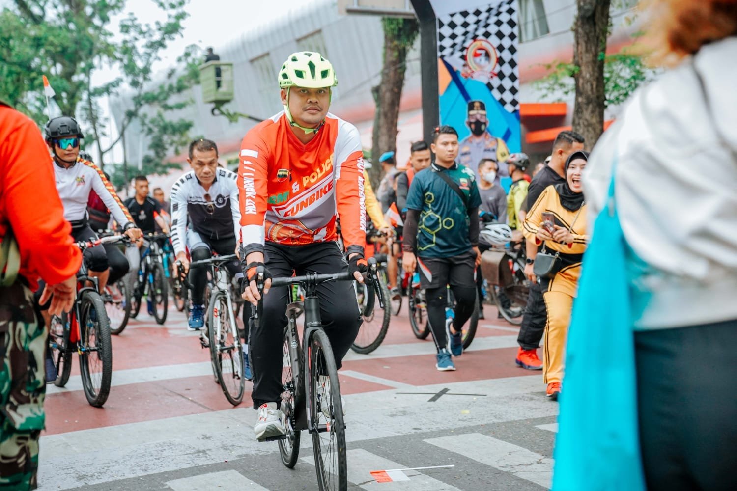 MATTANEWS.CO, MEDAN – Wali Kota Medan Bobby Nasution bersama Gubernur Sumut Edy Rahmayadi dan unsur Forkopimda Sumut mengikuti fun bike yang digelar dalam rangka menyambut HUT Kodam I/BB Ke 72 dan HUT Bhayangkara ke 76 tahun 2022 di Lapangan Benteng Medan, Minggu (19/6).