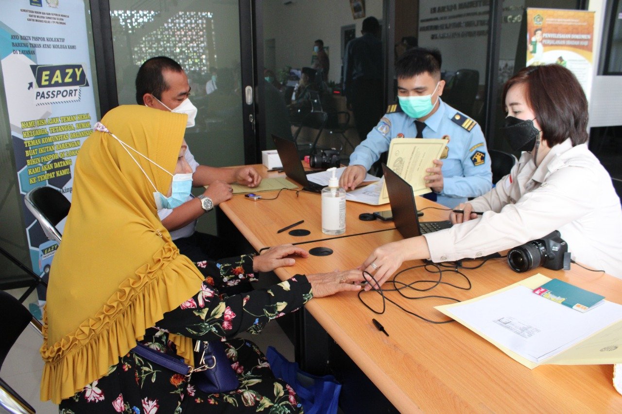 Untuk memberikan kenyamanan para jemaah saat pembagian paspor yang sudah dilakukan pemeriksaan dan sudah diterakan cap keberangkatan oleh petugas imigrasi, petugas imigrasi juga memberikan sosialisasi kepada jemaah agar dapat menyimpan paspornya dengan baik sehingga tidak jadi permasalahan setibanya di arab saudi dan selama melaksanakan ibadah haji.