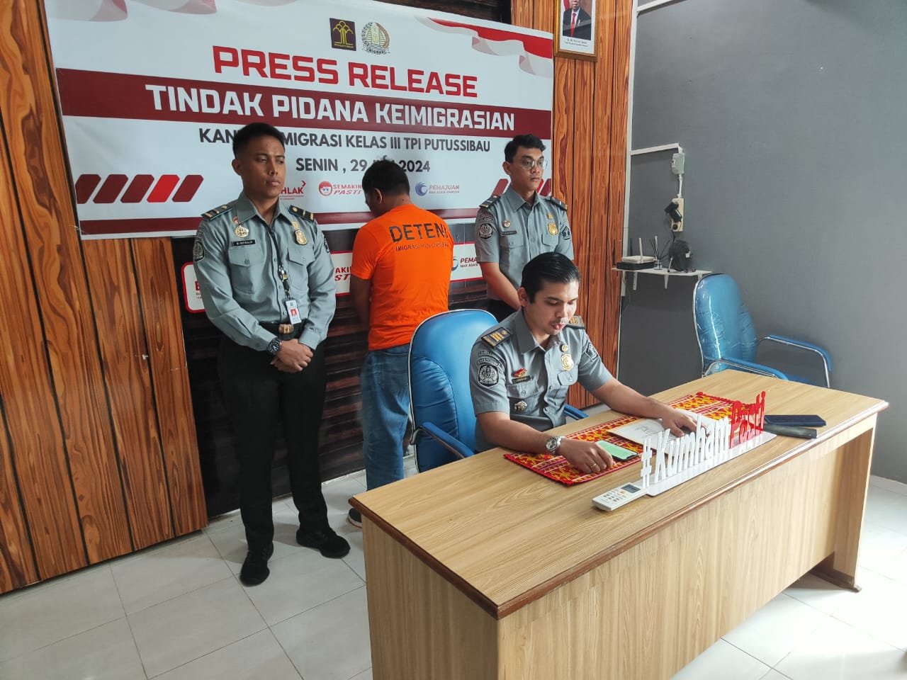MATTANEWS.CO, KAPUAS HULU – Kantor Imigrasi Kelas III TPI Putussibau melakukan press release bersama rekan media terkait adanya kasus Tindak Pidana Keimigrasian yang dilakukan oleh 1 orang Warga Negara Malaysia di wilayah Kabupaten Kapuas Hulu, Senin (29/7/2024).