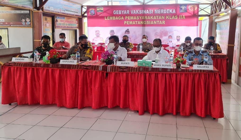 Setelah mengikuti rapat itu Kapolres-Forkopimda Kabupaten Simalungun meninjau pelaksanaan vaksinasi ke 400 orang warga binaan Kls II-A Pematangsiantar.