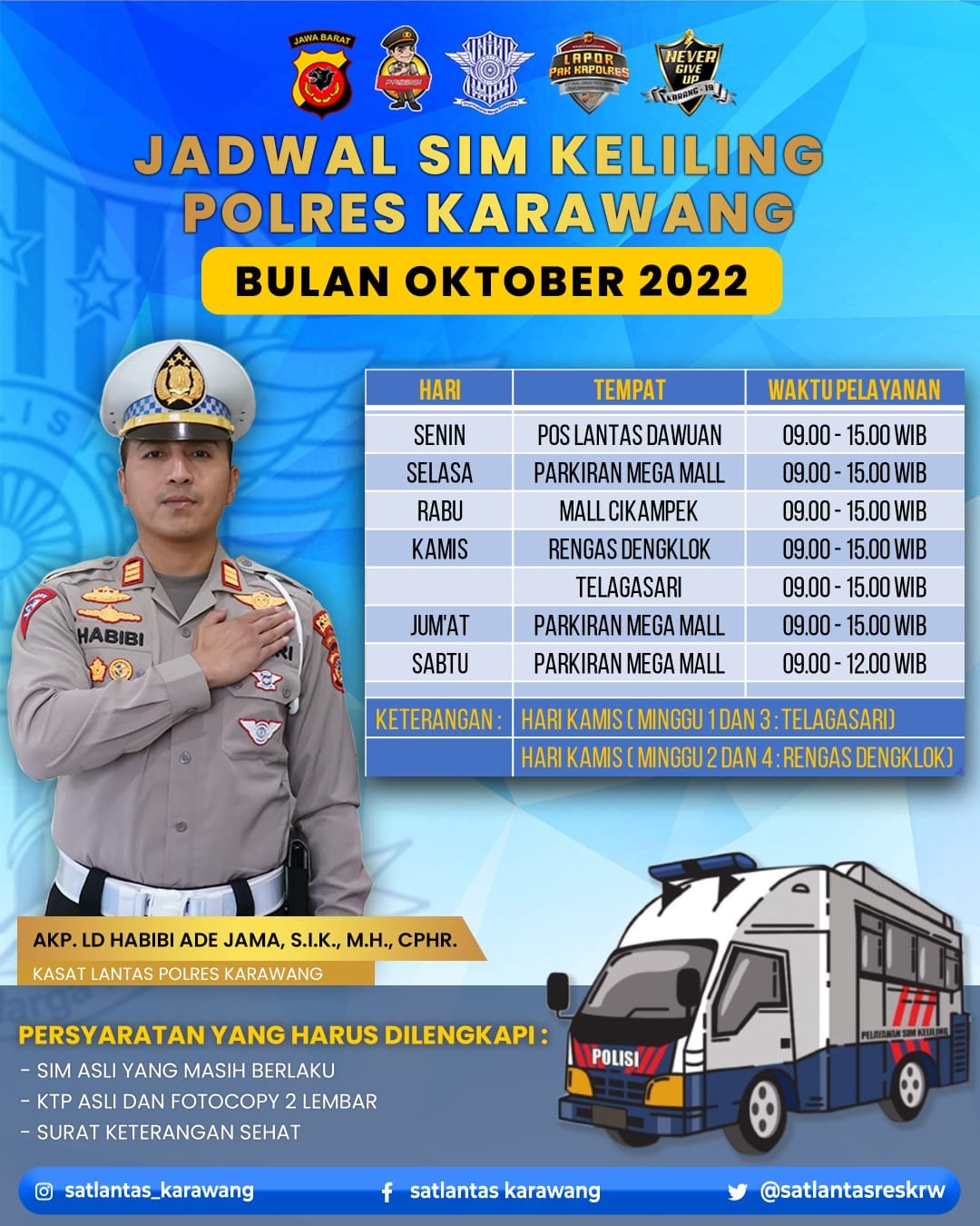 Berikut jadwal SIM Keliling Polres Karawang selama Oktober 2022 :