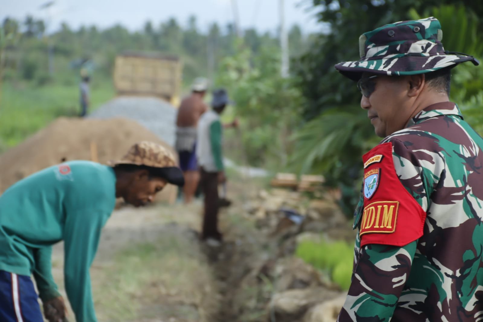 Ia jelaskan, kegiatan yang di laksanakan dalam Pra TMMD ke 124 ini yaitu penyiapan lapangan upacara pembukaan dan penutupan TMMD ke – 124, pengerjaan rabat beton jalan utama sepanjang seribu seratus lima belas meter.