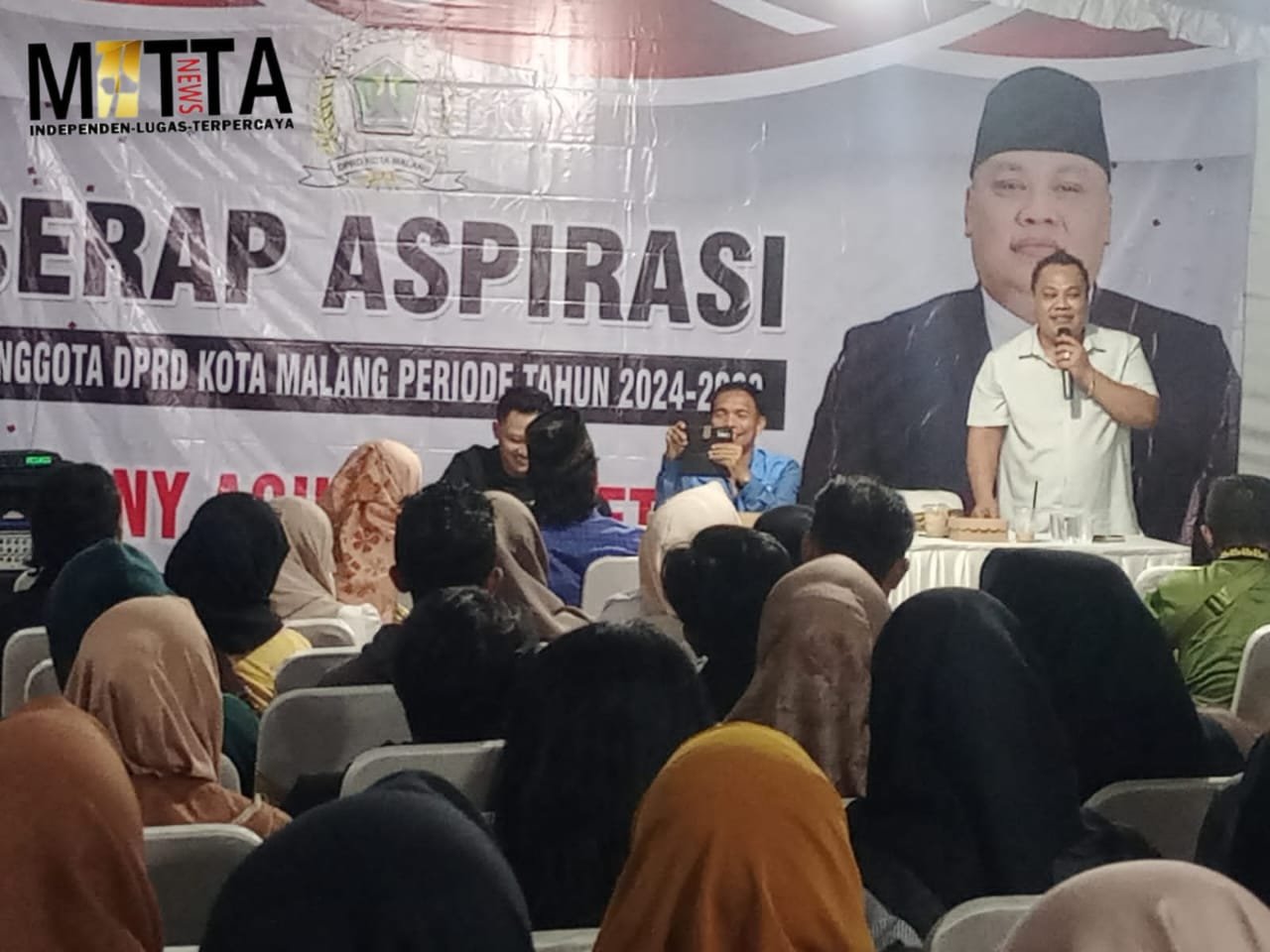 MATTANEWS.CO, MALANG – Reses Anggota Komisi A DPRD Kota Malang Periode 2024-2029, Danny Agung Prasetyo tegaskan komitmennya dalam mengawal aspirasi masyarakat yang berlangsung di Perum Pandanwangi Inside, Kecamatan Blimbing, Kota Malang, Selasa malam (5/8/2025).