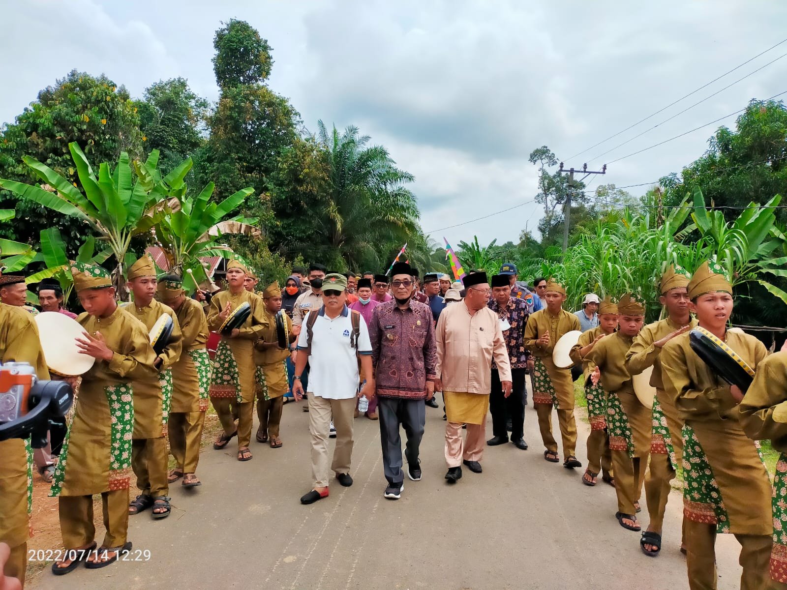 MATTANEWS.CO, BATANGHARI – Kedatangan rombongan Tim Ekspedisi Daerah Aliran Sungai (DAS) Batanghari yang berasal dari Kementerian Pendidikan, Kebudayaan, Riset dan Teknologi Republik Indonesia (RI), diketuai Dewi Kurnianingsih beranggotakan 50 orang terdiri dari berbagai universitas di Indonesia, arsitek, arkeologi, komunikasi, geografi dan sebagainya yang merupakan mahasiswa, dosen dan peneliti ke Desa Rambutan Masam, Kecamatan Muara Bulian, Kabupaten Batanghari disambut dengan Kompangan.
