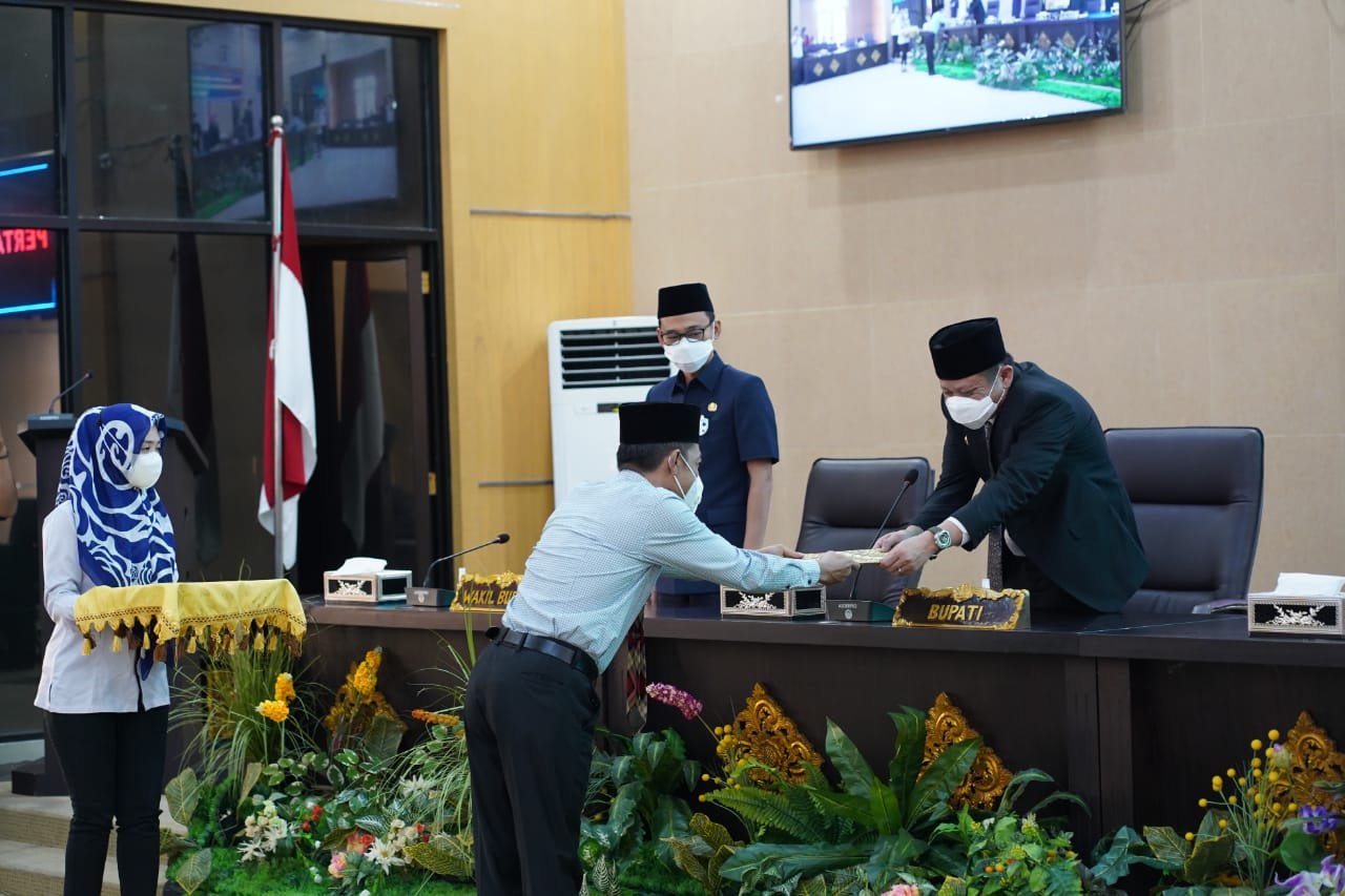 MATTANEWS.CO, OKU TIMUR – Bupati OKU Timur H. Lanosin, S.T bersama Wakil Bupati H.M. Adi Nugraha Purna Yudha, S.H. menghadiri Rapat Paripurna dengan Agenda Membahas LKPJ Bupati Ogan Komering Ulu Timur 2020, Rabu 28 April 2020 bertempat di Ruang Sidang Paripurna DPRD OKU Timur.