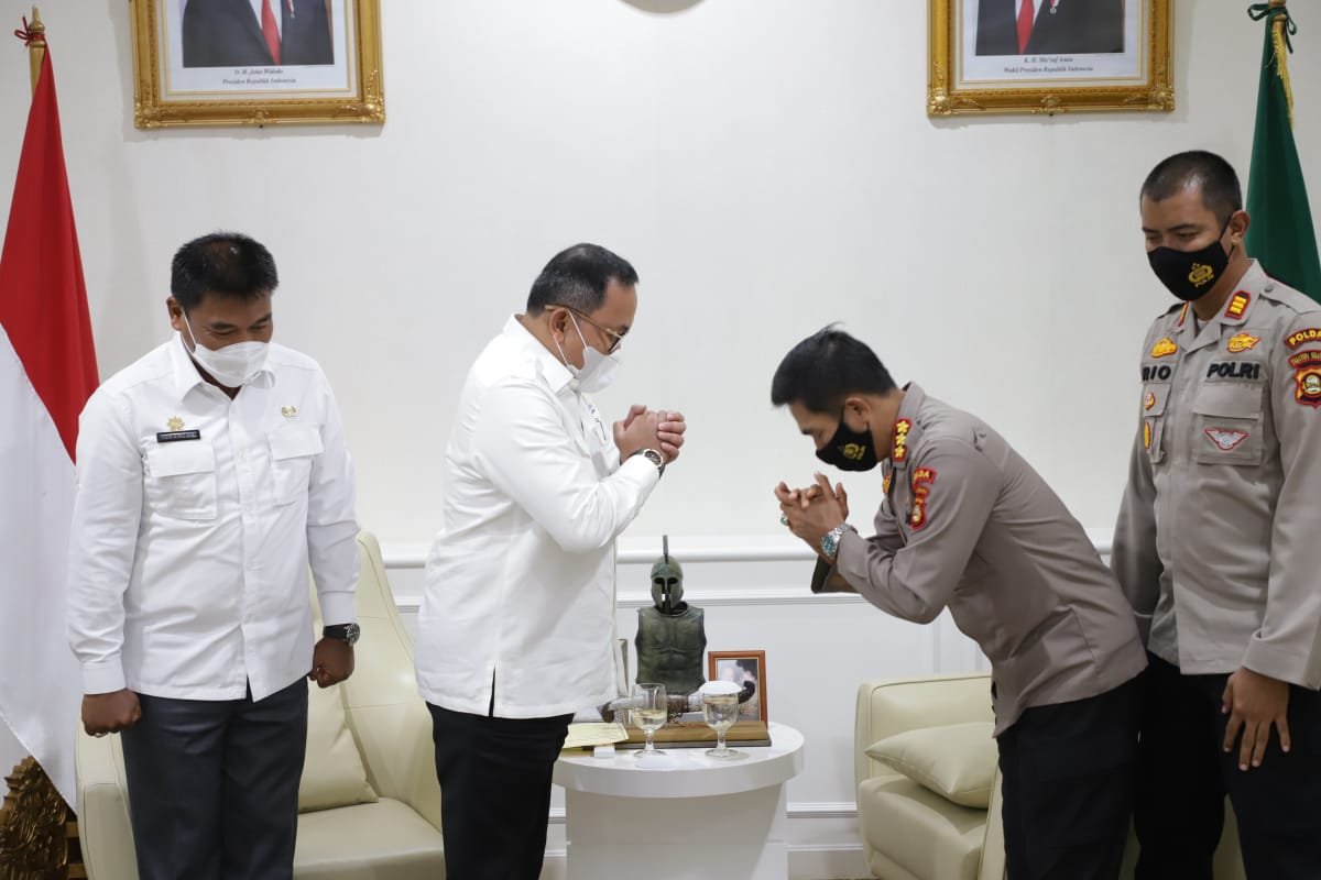 MATTANEWS.CO, MUSI BANYUASIN – Bupati Musi Banyuasin Dr H Dodi Reza Alex Noerdin menyambut kunjungan Kepala Sekolah Polisi Negara (SPN) Betung Polda Sumatera Selatan ke Bumi Serasan Sekate, di Ruang Audiensi Bupati Muba, Kamis (14/1/2021).