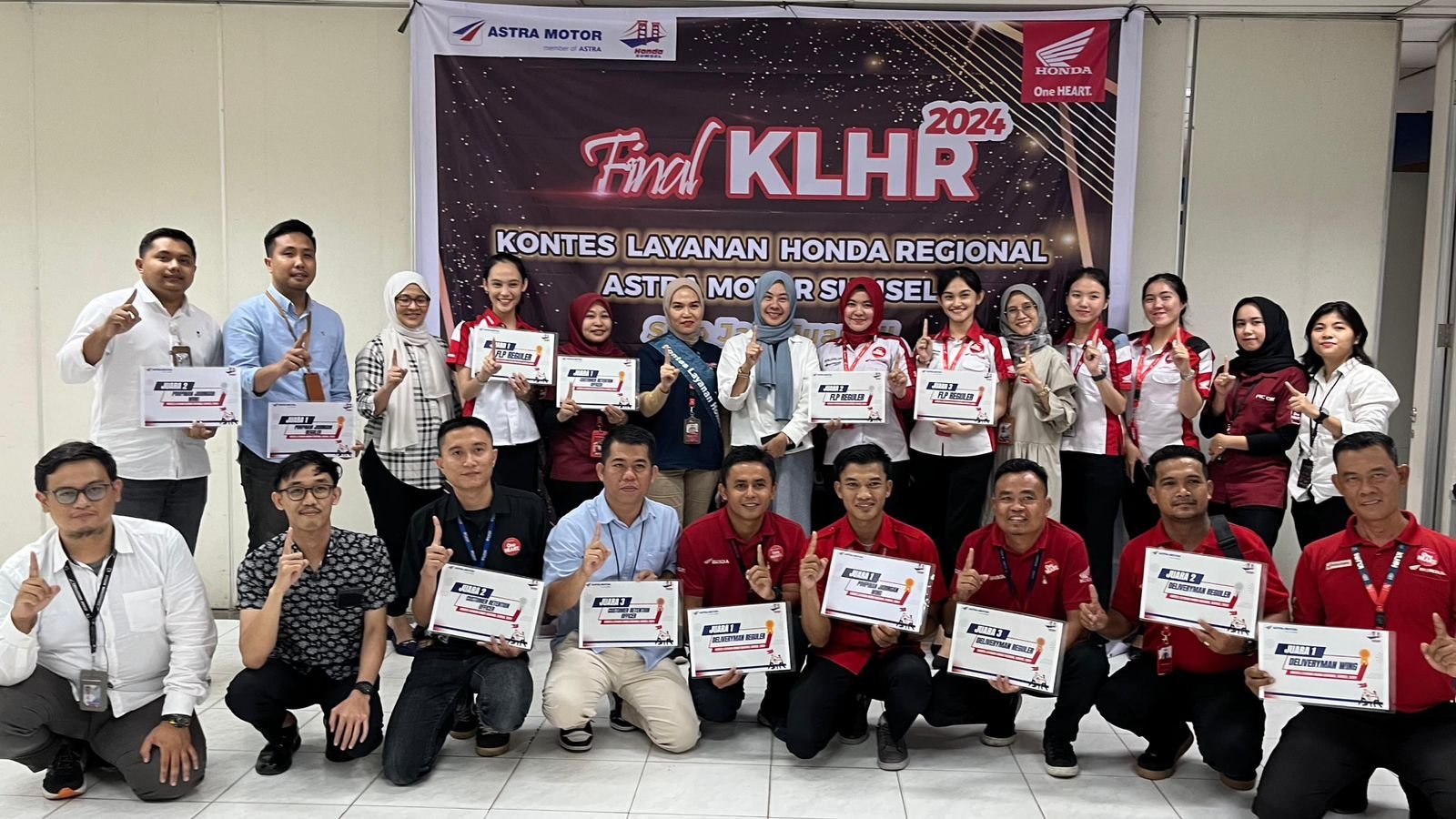 MATTANEWS.CO, PALEMBANG – Astra Motor Sumsel akhirnya mengumumkan pemenang Kontes Layanan Honda Regional (KLHR) Sumatera Selatan 2024 yang telah diadakan di main dealer. Kompetisi ini dibagi menjadi 6 kategori yaitu Front Line People (FLP) Reguler, Customer Retention Officer, Pimpinan Jaringan Wing, Pimpinan Jaringan Reguler, Deliveryman Wing, dan Deliveryman Reguler.