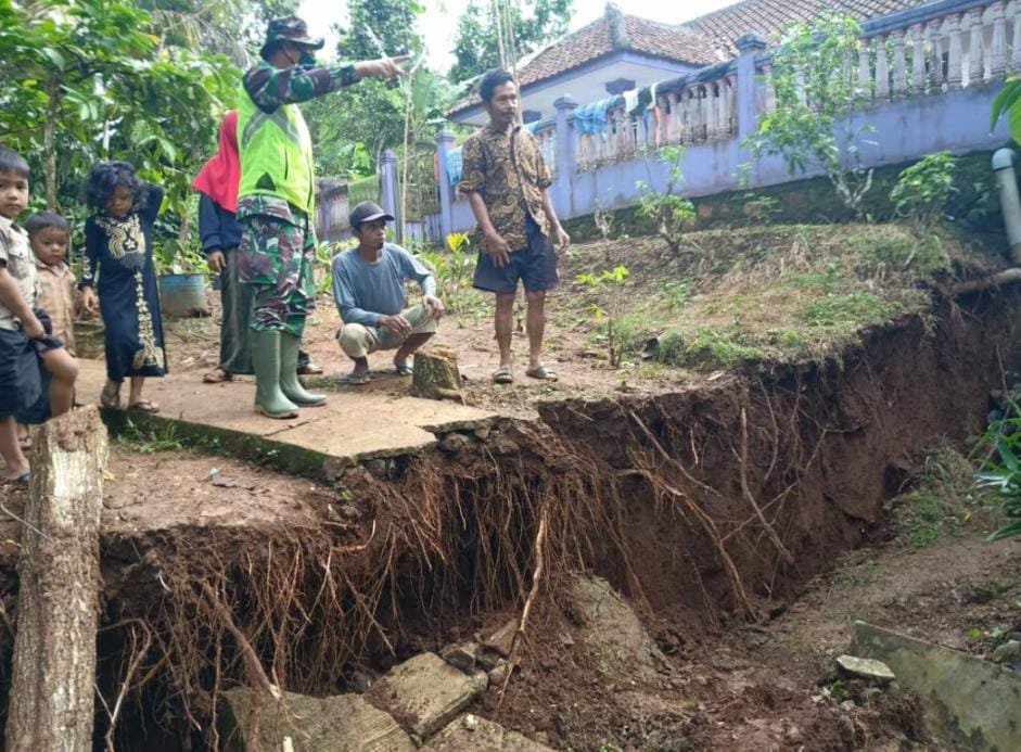 Danramil 1311/Rajadesa, Kapten. Arm Nursaid mengatakan, pihaknya mendapat laporan ada tanah amblas di wilayah Desa Sukajaya Kabupaten Ciamis , Minggu (3/1/2021) pagi.