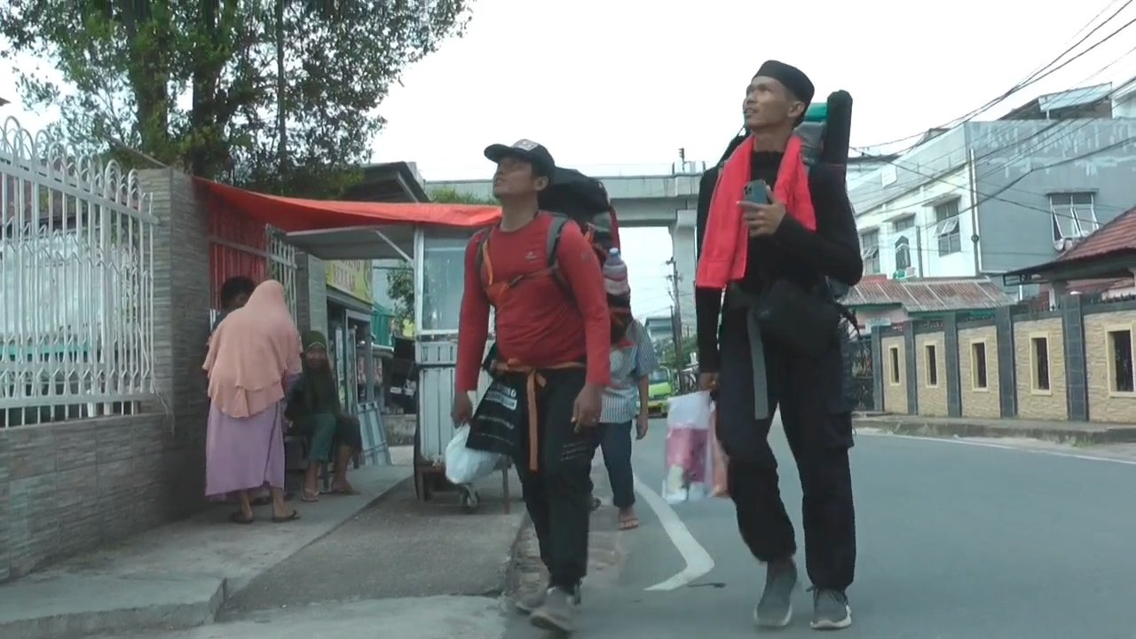 MATTANEWS.CO, PALEMBANG – Demi menjalankan rukun islam ke 5, ibadah ke tanah suci Makkah, Dua pria bernama Eko Purwanto (37) asal Depok, Jawa Barat dan Muhammad Eka Sandy (35) asal Surabaya, Jawa Timur melakukan ekspedisi jalan kaki untuk ke Mekkah kini telah sampai dikota Palembang, Selasa (27/5/2025).