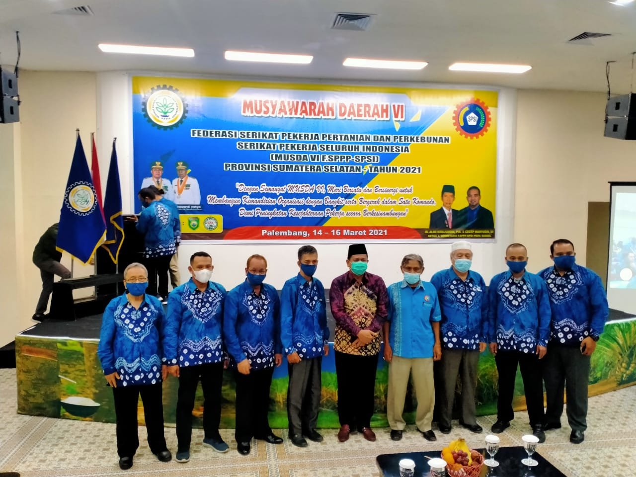 MATTANEWS.CO, PALEMBANG – Hasil Musyawarah Daerah (Musda) ke – VI Tahun 202I, Ir Alwi Sirajuddin terpilih kembali sebagai Ketua DPD Federasi Serikat Pekerja Pertanian dan Perkebunan Serikat Pekerja Seluruh Indonesia (F SPPP-SPSI) Provinsi Sumatera Selatan (Sumsel), masa periode tahun 2021-2026.