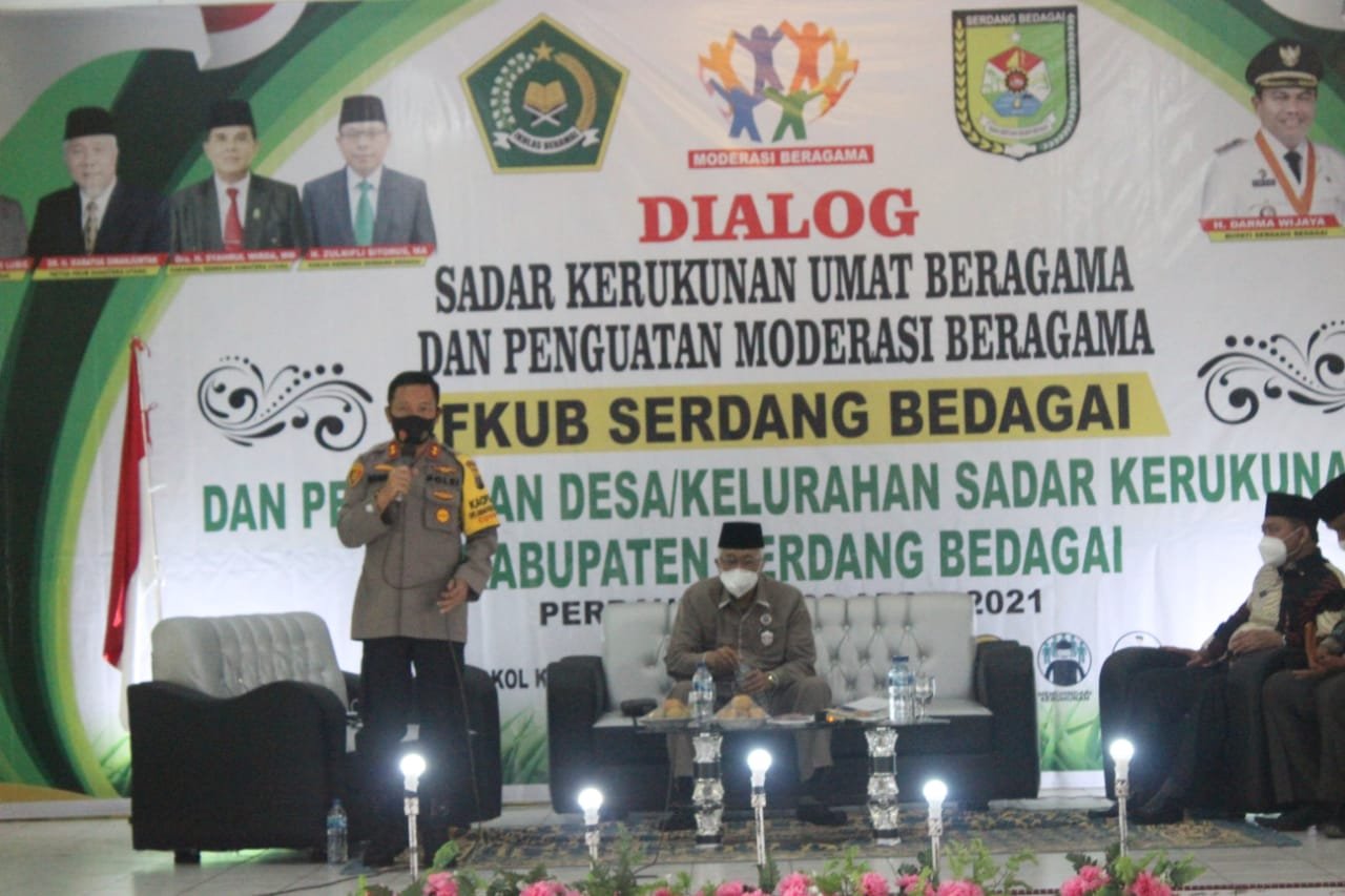 Seperti di sampaikan Kapolres Sergai AKBP Robinson Simatupang saat menghadiri dan menjadi Narasumber dalam Dialog Sadar kerukunan umat beragama dan penguatan moderasi beragama dengan pendalaman di Wisma Juang kelurahan Simpang Tiga Pekan, kecamatan Perbaungan, Kamis (8/4/2021)
