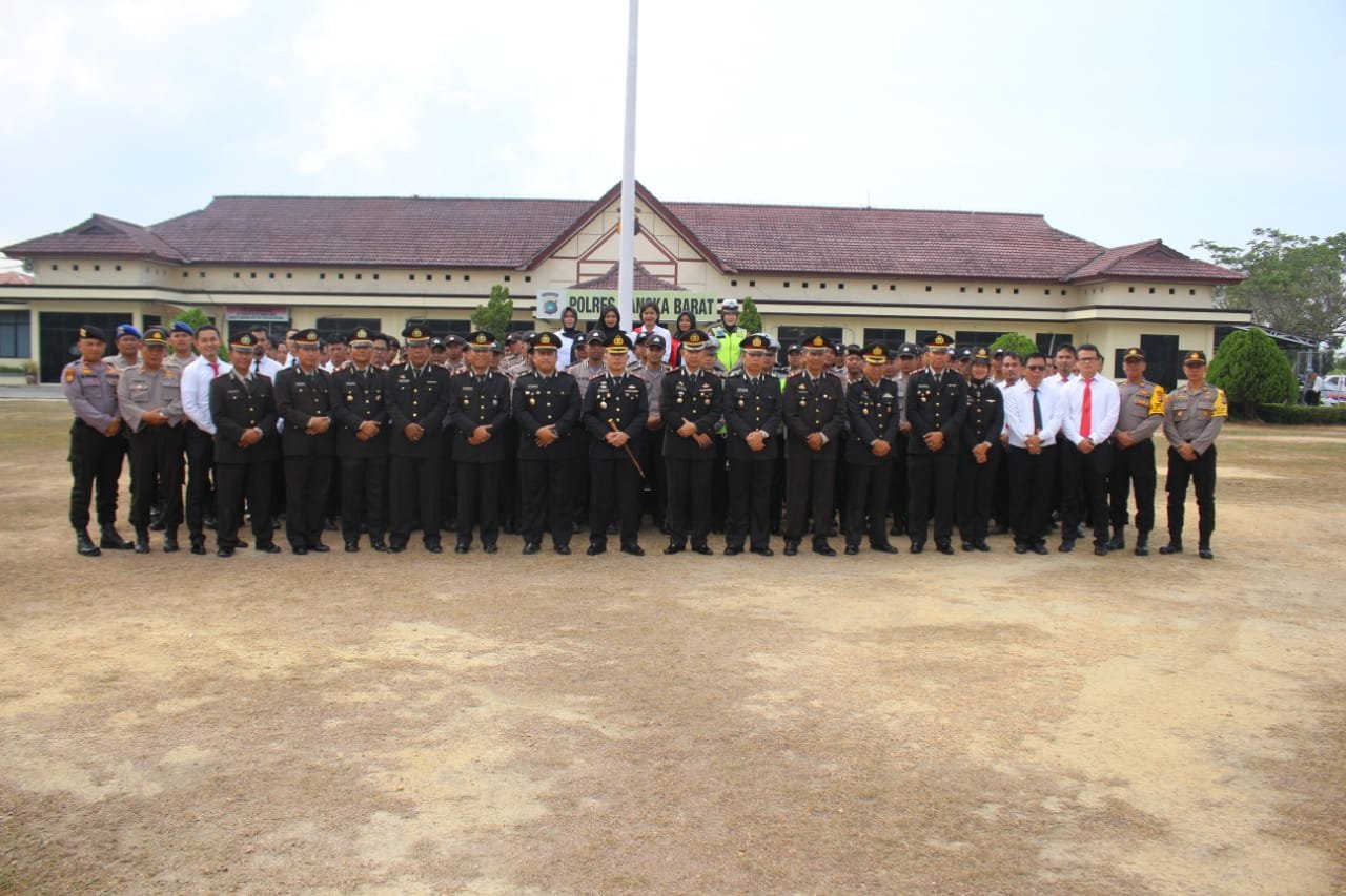 Upacara tersebut di ikuti oleh Seluruh pejabat utama Polres Bangka Barat, Kapolsek jajaran dan seluruh Personil Polres Bangka Barat baik perwira maupun bintara di lingkungan Polres Bangka Barat.