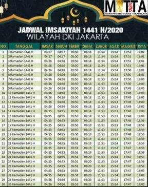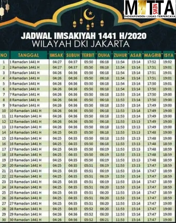 Berikut Jadwal Imsakiyah DKI Jakarta dan sekitarnya Ramadhan 1441 Hijriah atau 2020 Masehi.