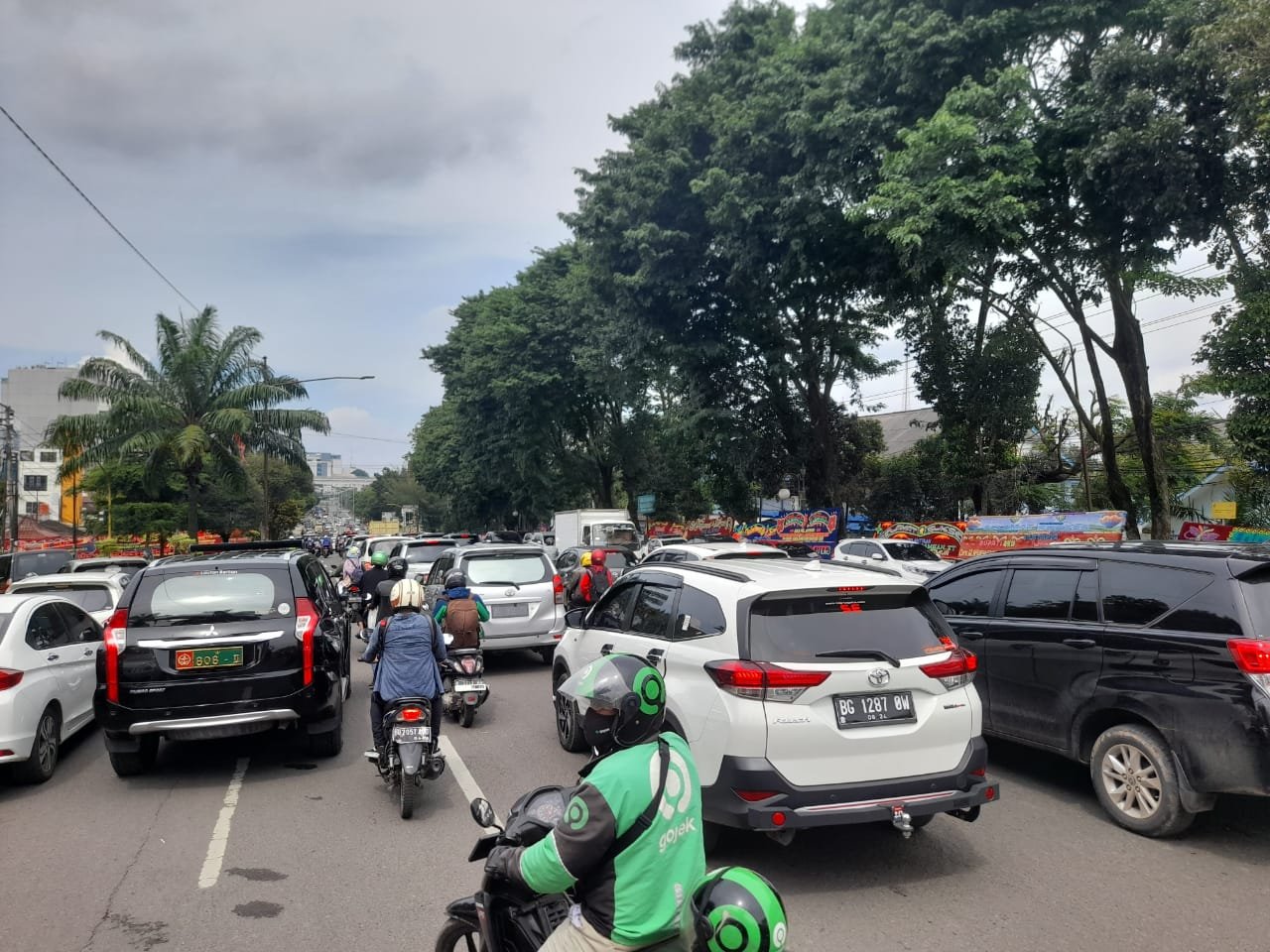 Dari pantauan Mattanews.co, macat disebabkan oleh, ramainya mobil pengunjung yang parkir di pinggir jalan, sehingga ruas jalan menjadi sempit di Palembang.