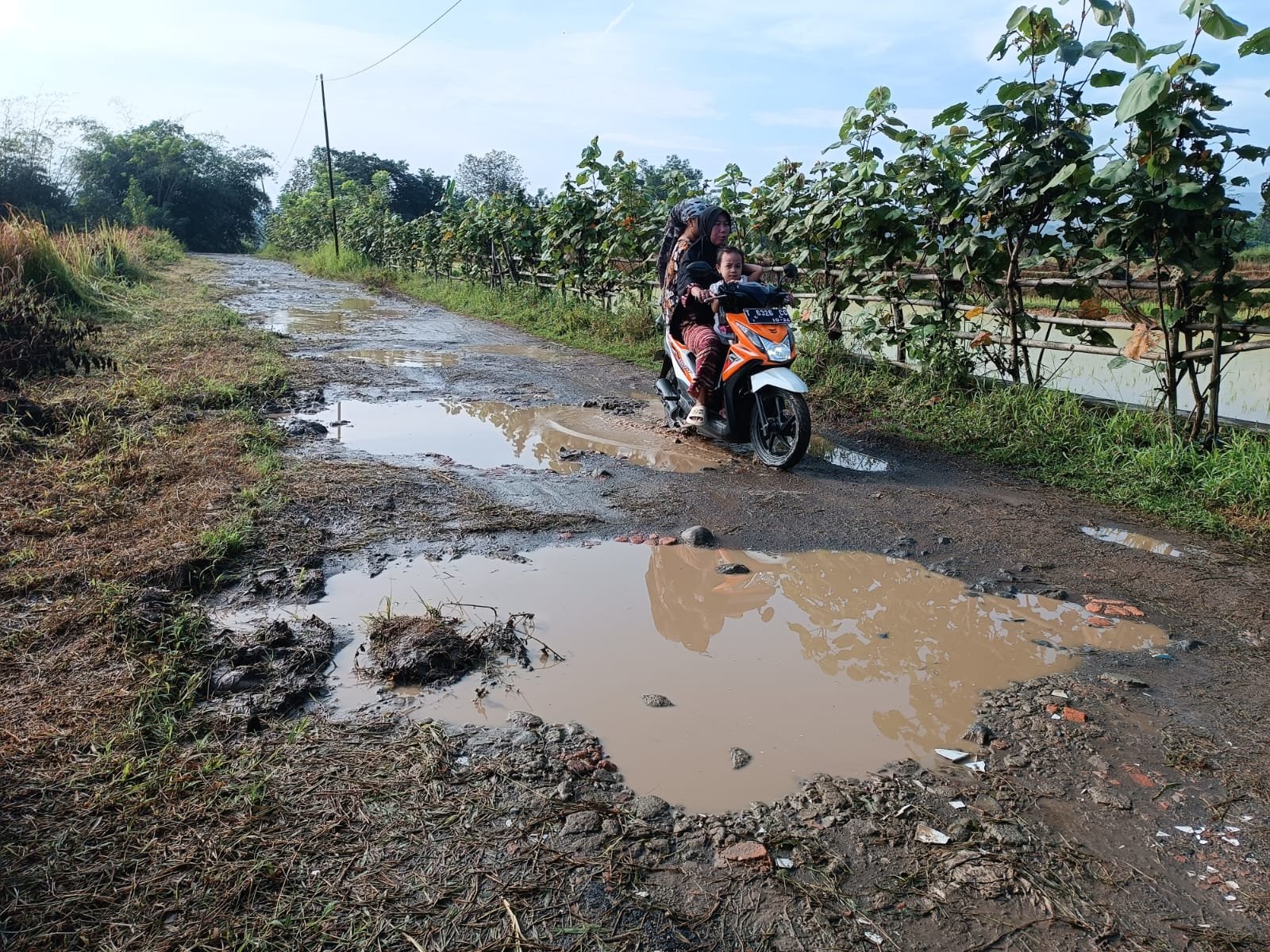 “Jalan rusak sudah lama, sudah beberapa tahun,” jelas Asep Dudung, Kadus 3 Desa Margasari.