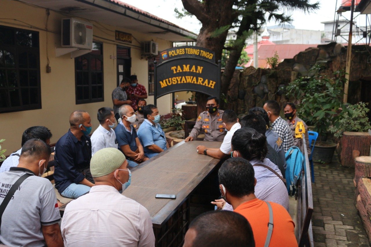 Guna mempererat silaturahmi, Kapolres Tebingtinggi (Sumut), AKBP Agus Sugiyarso mengajak seluruh wartawan yang liputan di Polres duduk bareng, di Taman Musyawarah, untuk mengkampanyekan atau mensosialisasikan protokol kesehatan di pandemi covid 19 ini kepada warga masyarakat kota Tebingtinggi (Sumut), Rabu (13/1/2021).