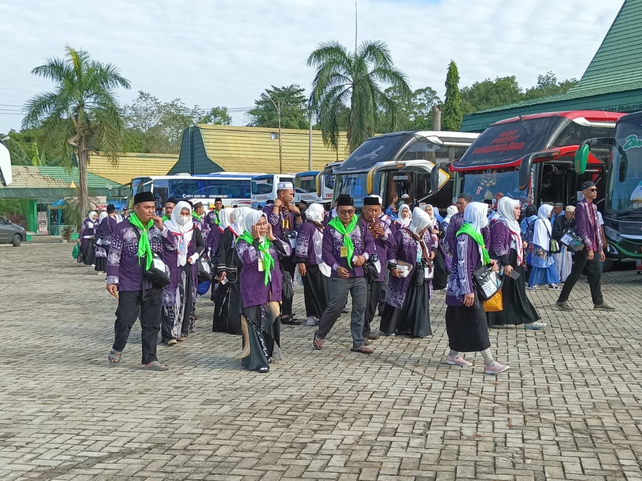 Sebelum berangkat ke embarkasi haji Banjarmasin, para jamaah berkumpul di Masjid Agung Al Mukarram Jalan Tambun Bungai dan melaksanakan solat subuh berjamaah. Setelah itu para jamaah dengan tertib memasuki bus dengan diiringi isak tangis para keluarga yang mengantar.