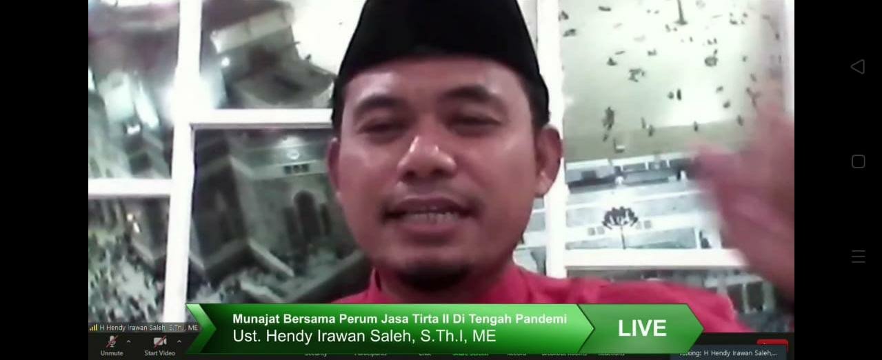 Acara dengan tema Munajad bersama Jasa Tirta II di Tengah Pandemi diselenggarakan secara daring melalui zoom dan Youtube Water & Renewable Energy Learning Center Jasa Tirta II pada Jumat, 16 Juli 2021. Dipimpin oleh Ust. Hendry Irawan Saleh, S.Th.I, ME dan dimoderatori oleh Didin Syaripudin, acara munajad berlangsung dengan hikmat dan khusyuk.