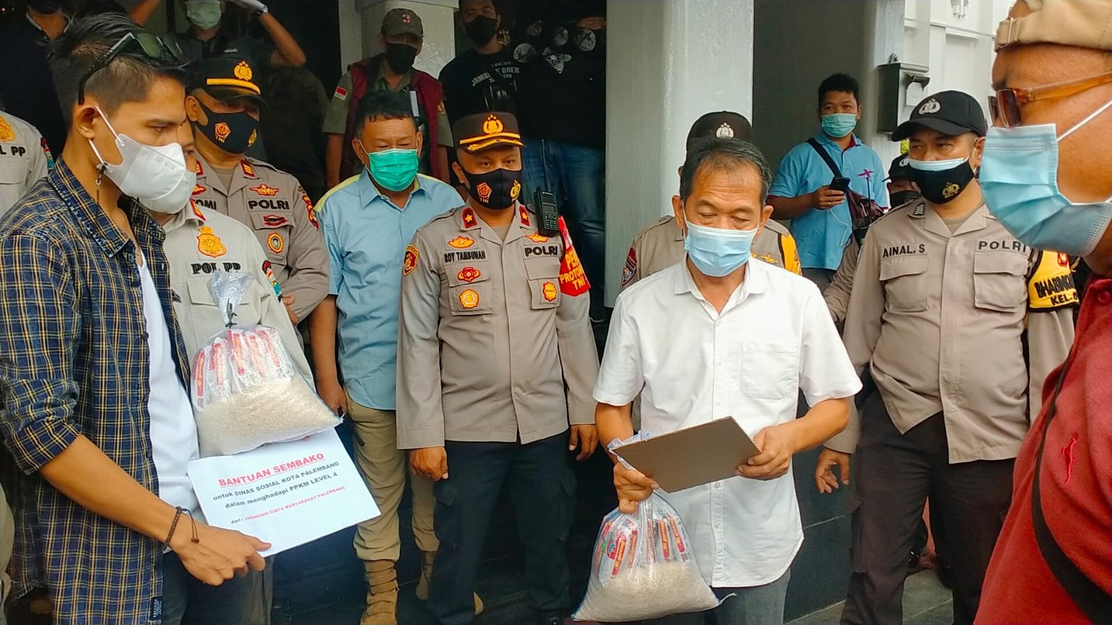 Dari itu kami menggugah hati Wali Kota Palembang, supaya cepat membantu masyarakat dalam kondisi PPKM level 4,” ujar Rahmat Sandi dalam orasinya di kantor Wali Kota Palembang.