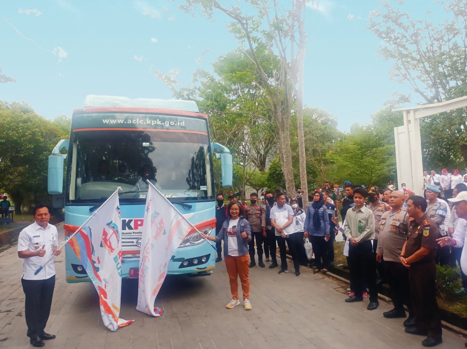 Acara ditutup dengan poto bersama TIM Roadshow KPK dan Forkopimda Prabumulih, terakhir pelepasan Bus Roadshow oleh Forkompinda yang dipimpin Wali Kota Prabumulih.