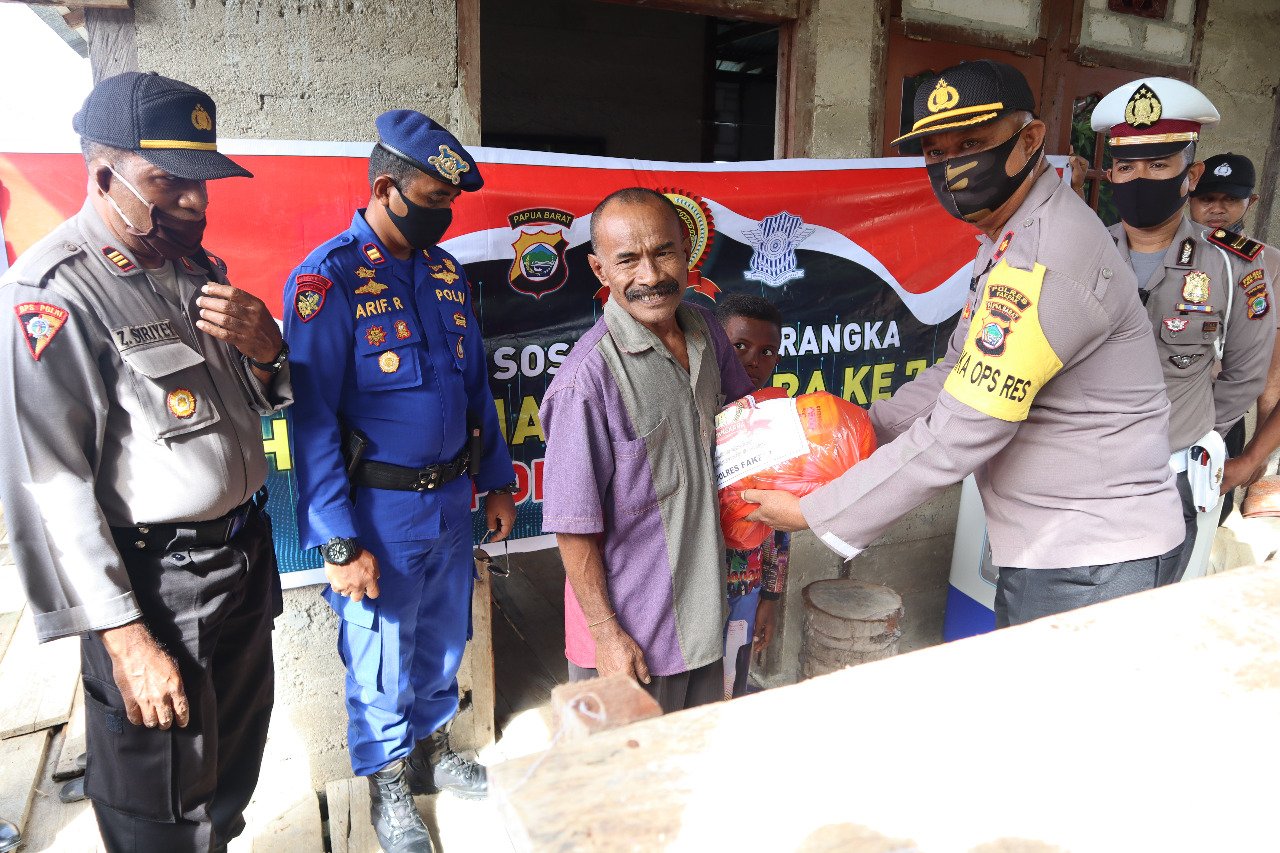 Bantuan sembako untuk kampung Tanama distrik Pariwari diserahkan langsung oleh Wakapolres Kompol Daniel Duma Sarampang beserta PJU polres Fakfak kepada Bapak Abdul Razak Rengen.