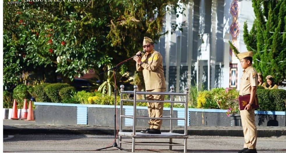 MATTANEWS.CO, KARO – Bupati Karo, Brigjen Pol (Purn) Dr. dr. Antonius Ginting, Sp.OG., M.Kes, yang diwakili oleh Wakil Bupati Karo, Komando Tarigan, SP., bertindak sebagai pimpinan apel pada Apel Gabungan yang dilaksanakan di halaman Kantor Bupati Karo, pada Senin (09/02/2026).